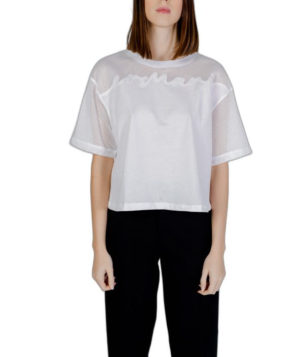 Svježa prozračnost: Armani Exchange bijela bluza s mrežastim detaljima.